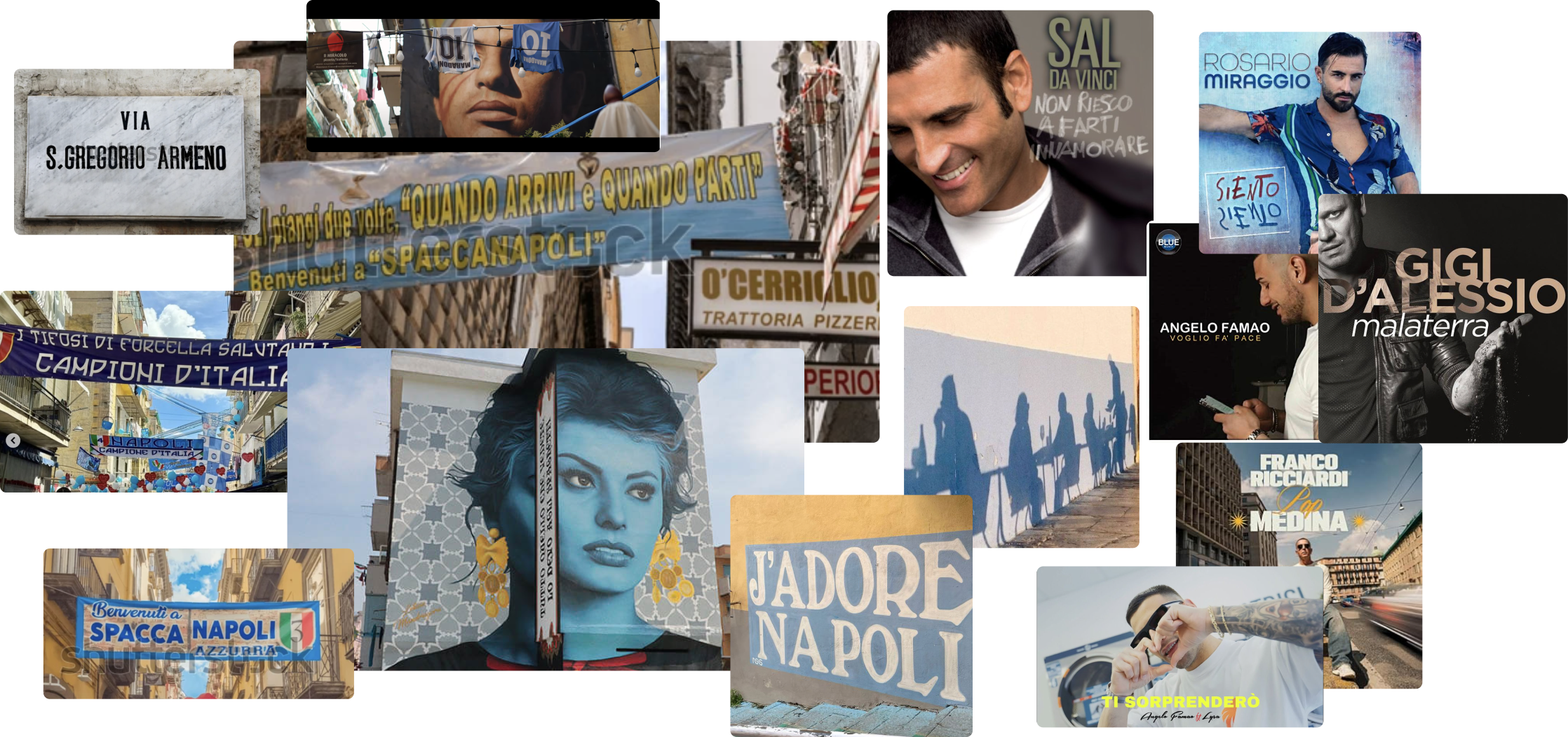 I began with a deep dive into Naples — researching its history, culture, and visual identity. I explored the aesthetics of modern Neapolitan musicians, the city’s street art, and iconic symbols like the Napoli soccer team, noting their frequent use of sky blue as a visual marker of local pride.