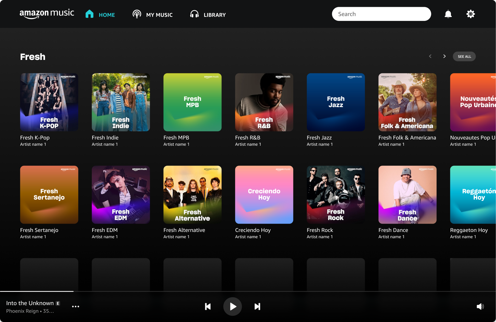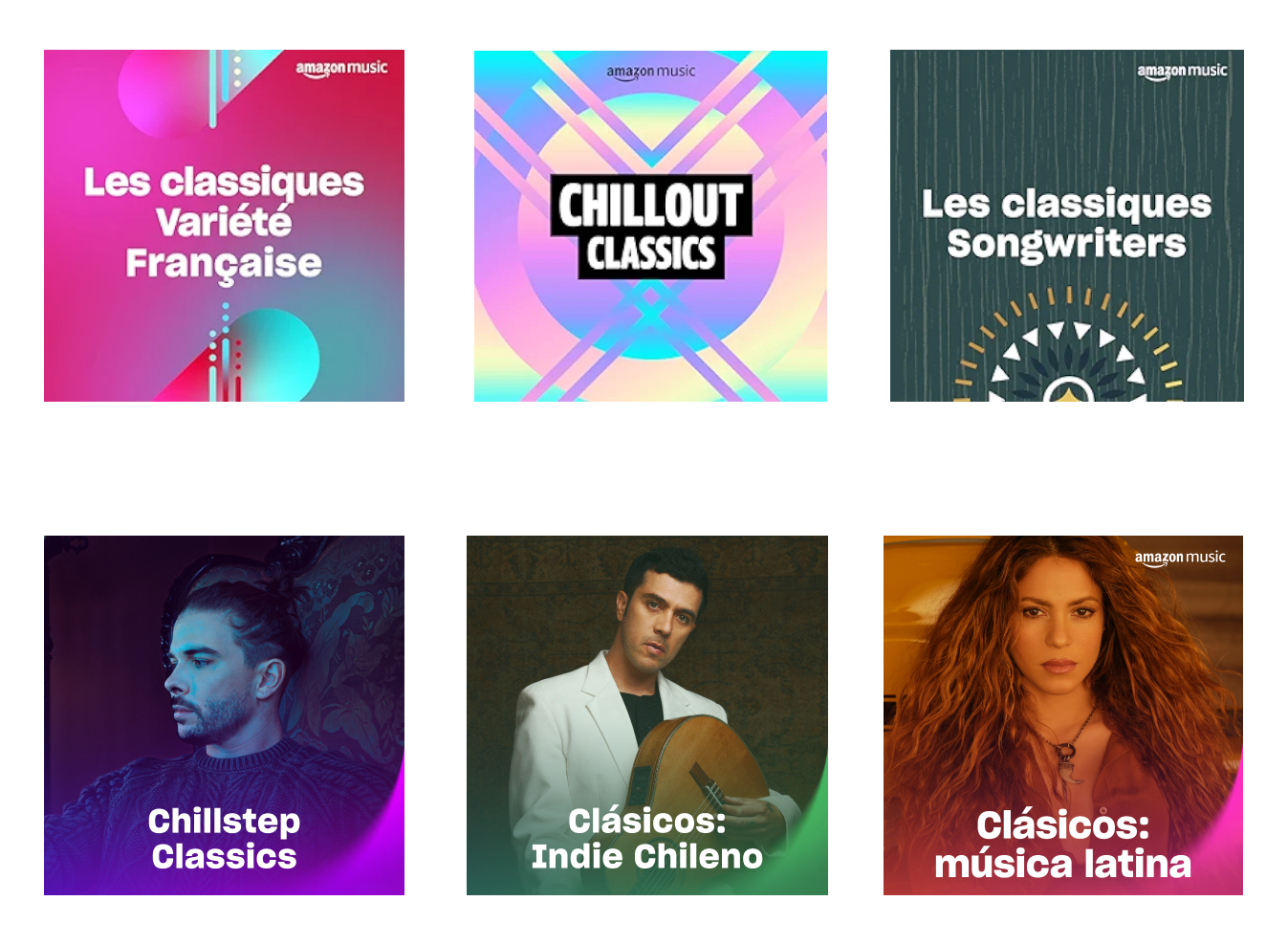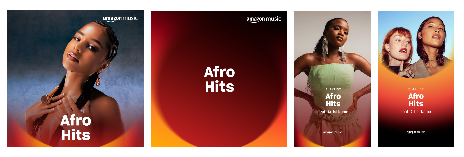 The previous playlist visuals lacked consistency, which limited their impact across Amazon Music’s platform and marketing touchpoints. The challenge was to create cohesive designs for four unique series while honoring Amazon’s gradient-heavy, blur-forward brand guidelines. Each series had to feel part of the same family while maintaining its own personality, with the Fresh series standing out as the boldest due to its large and growing audience.